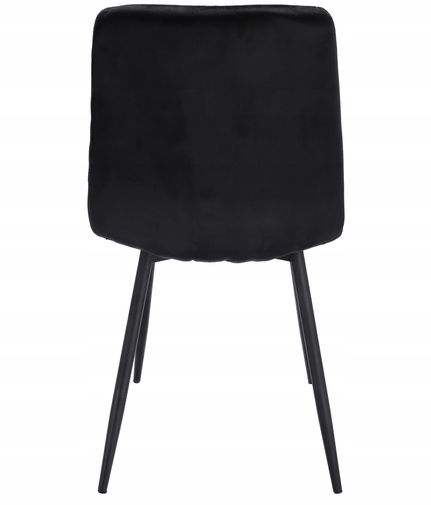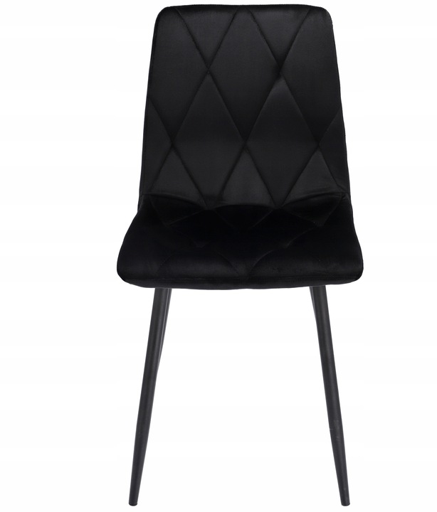 Krzesło tapicerowane jest welurem, a po wewnętrznej stronie pikowane regularnymi przeszyciami w romby. Wysokie i smukłe nóżki w czarnym kolorze wyglądają bardzo szykownie oraz gwarantują idealną stabilność.