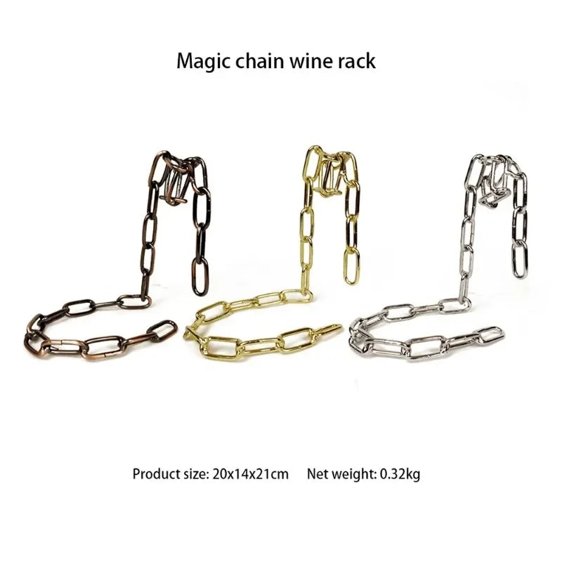 Elegancki i nowoczesny stojak na wino w kształcie łańcucha, który łączy funkcjonalność z designerską dekoracją. Idealny do salonu, kuchni, biura lub jako kreatywny prezent dla miłośników wina.